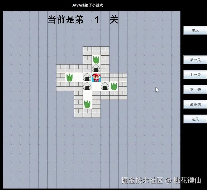 这个包粽子游戏是从推箱子游戏演变而来,预期效果是小人将饭团推向粽子叶,然后变成粽子。然后设置不同难度的关卡,具体的玩法和推箱子一样,只是所有元素替换为端午风格。