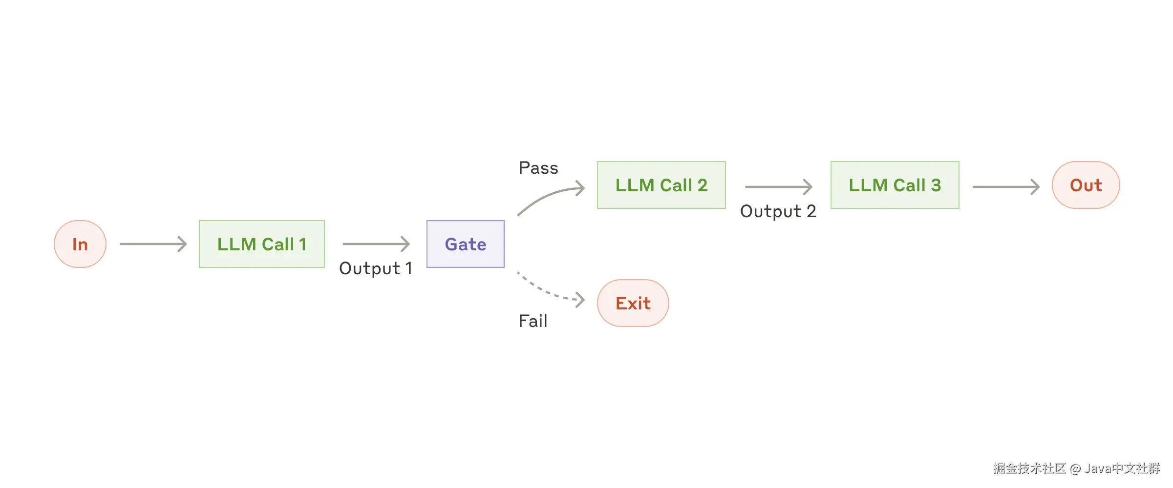 该模式将复杂任务分解为一系列步骤,其中每个 LLM 调用都会处理前一个 LLM 调用的输出。