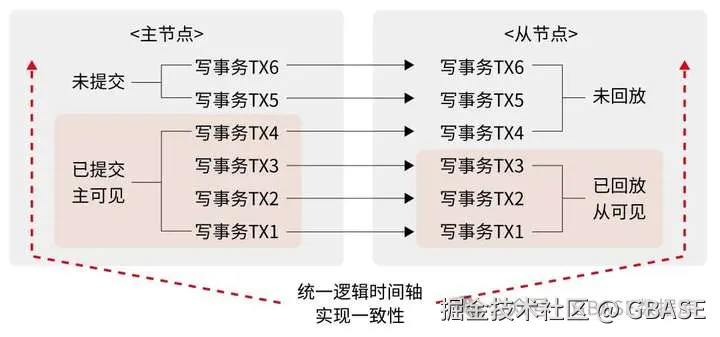 - 全局时间戳同步:主从节点基于统一提交时间戳协调数据可见性,确保从节点查询结果严格匹配主节点的事务一致性状态。