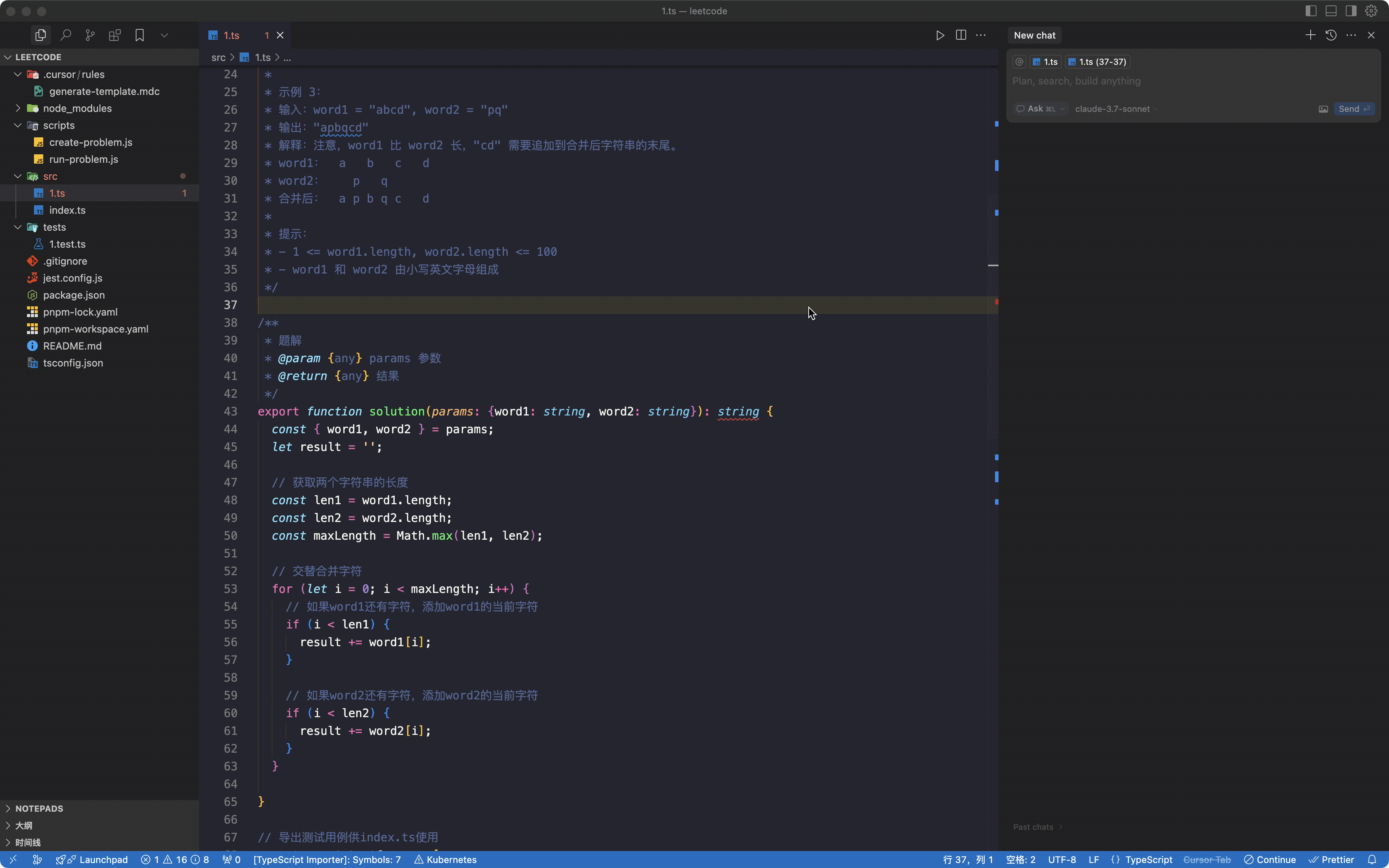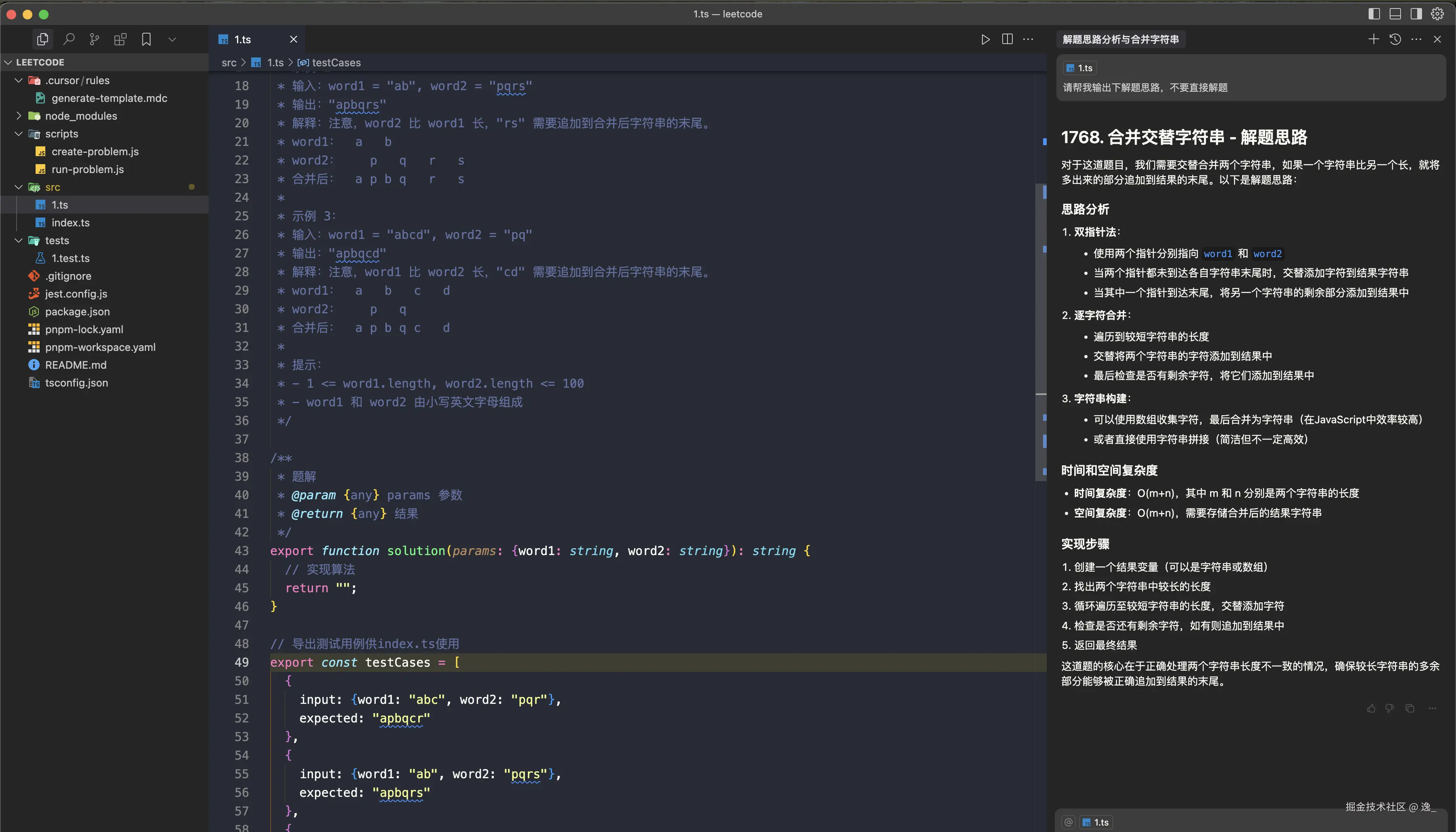 近期开始刷leetcode,我发现不可能自己在leetcode上去硬解题效率太低,还有就是上来直接做题不知道一些原理性的东西也没什么意义。特别是在一些复杂的逻辑里面似懂非懂,这个时候就需要做几个事情来快速提升我们的解题的效率和对题目原理的理解,这是我在刷题过程中基于cursor的AI能力做的几个事情,希望对你们有一些启发: