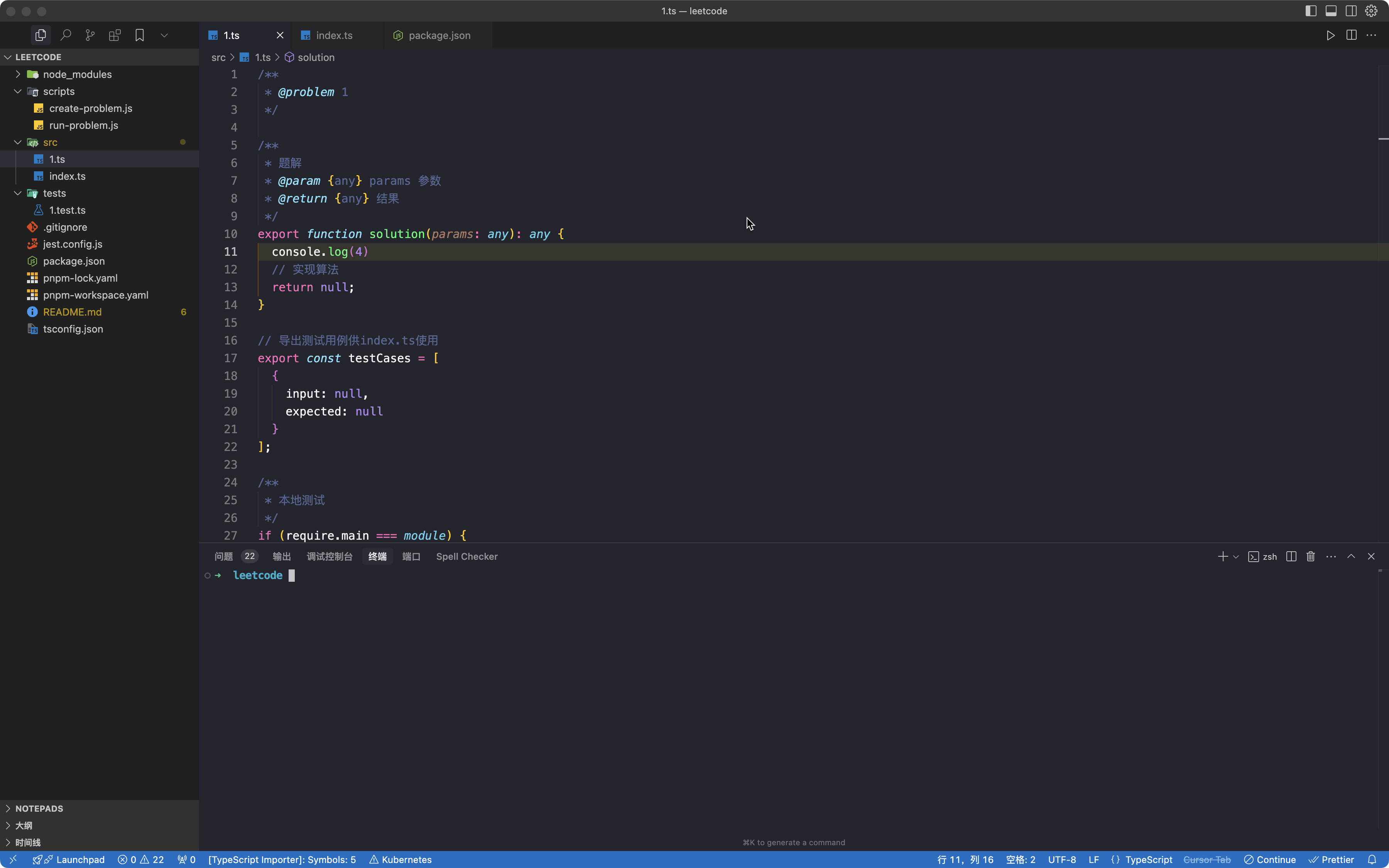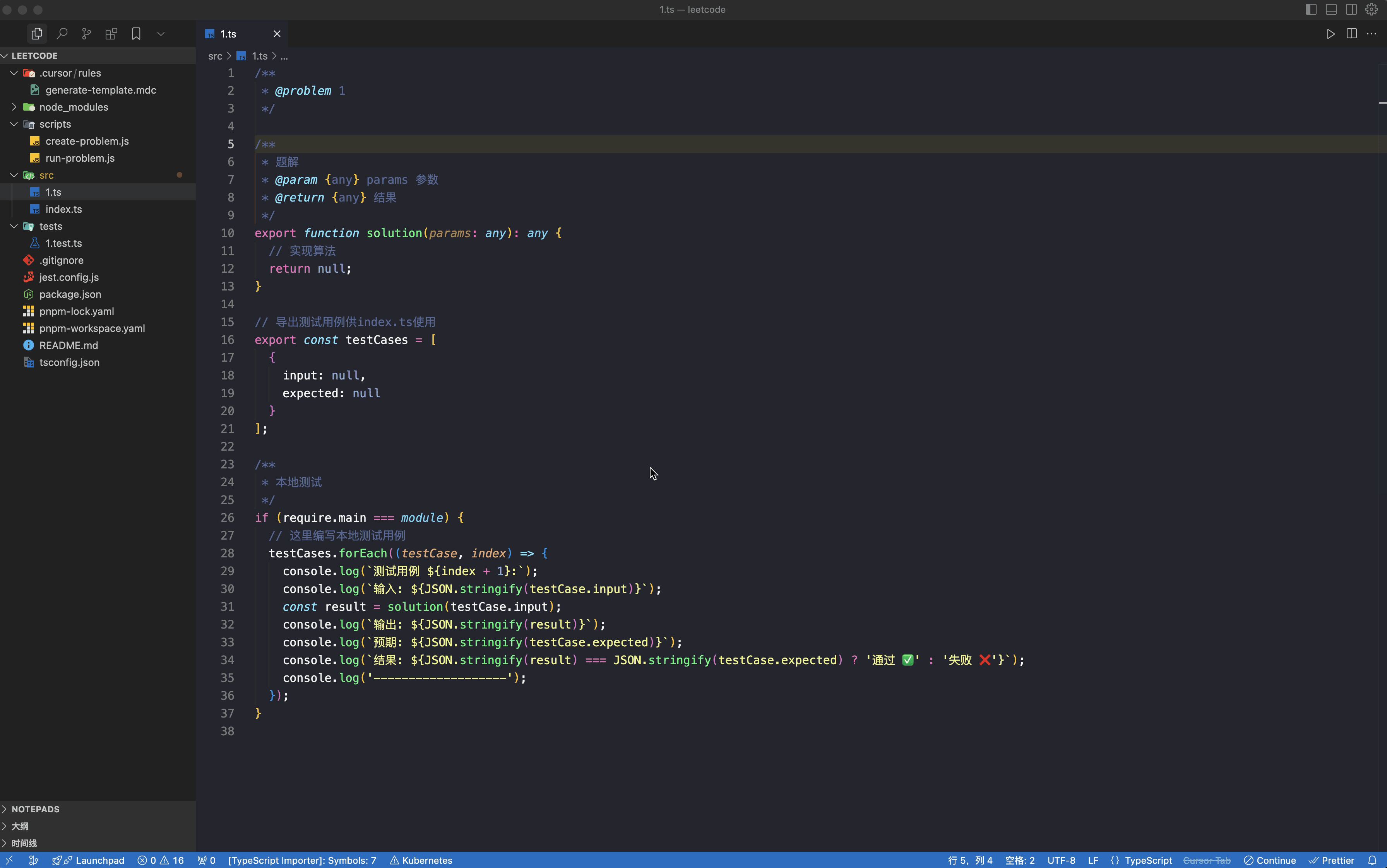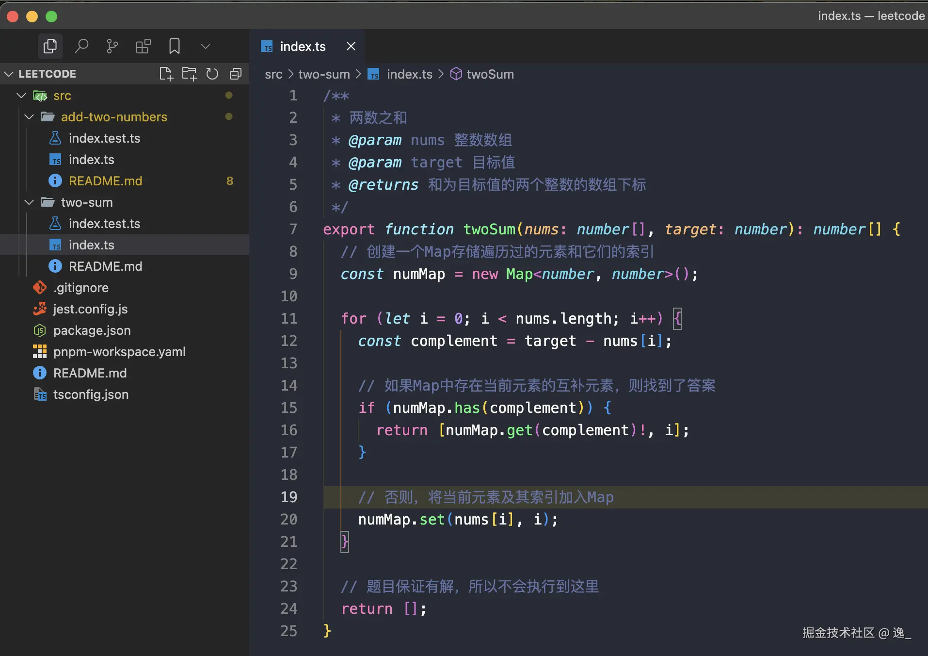- 每个题目一个单独的文件,例如 `two-sum.ts`