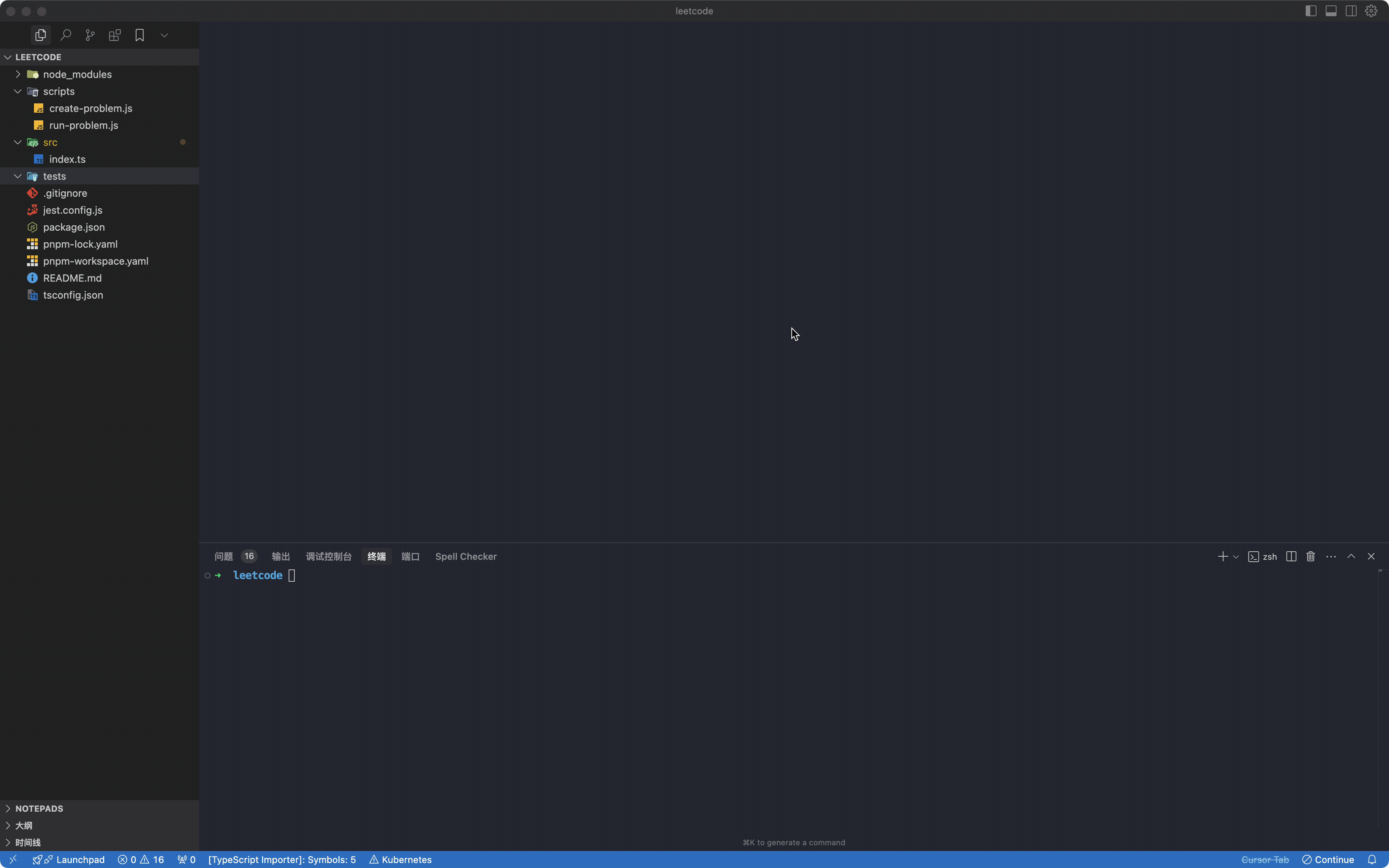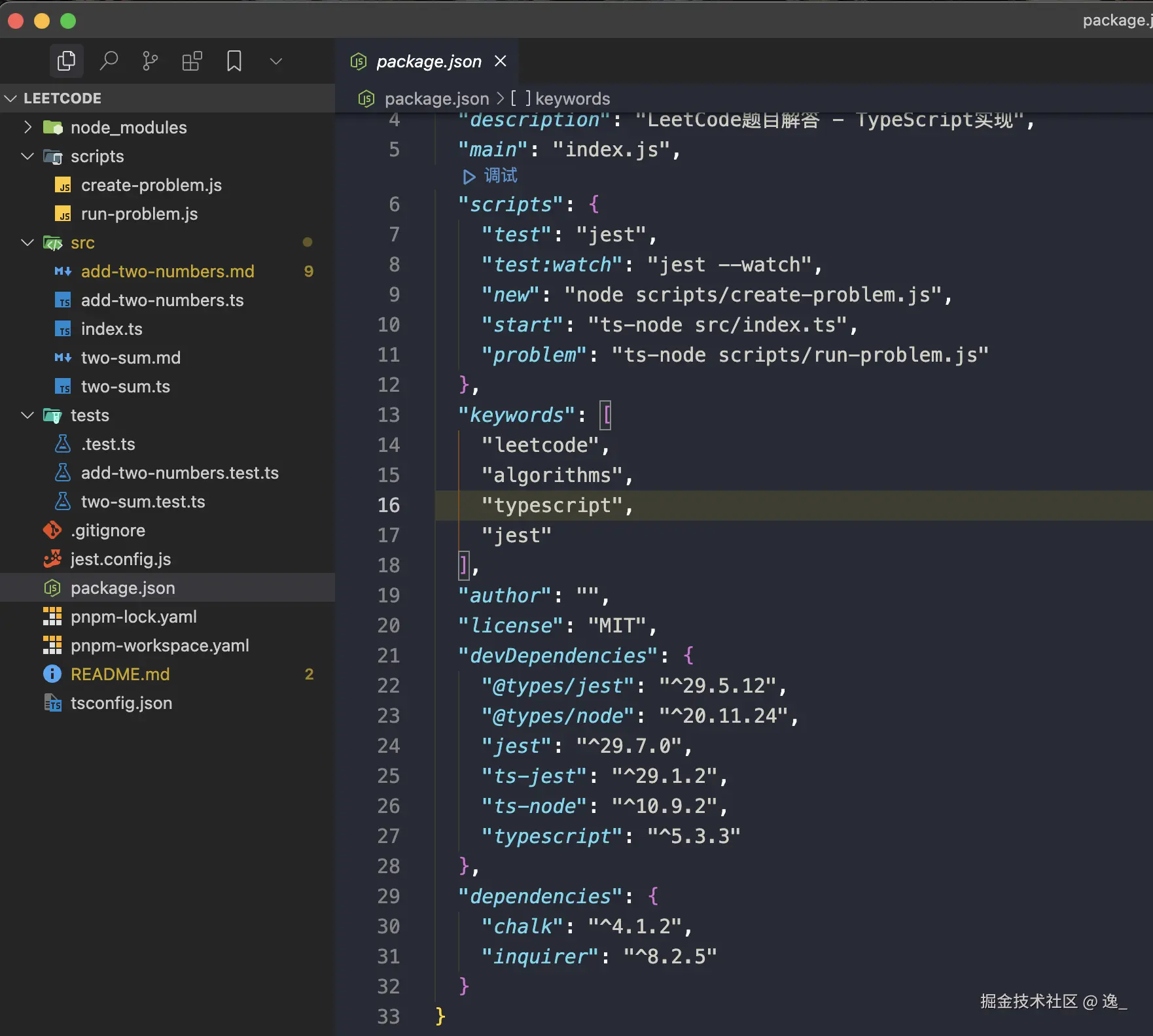 我需要刷leetcode的题目,帮我生成一个刷题项目,要求pnpm和typescript来做开发,jest作为单元测试,每个题目单独一个文件