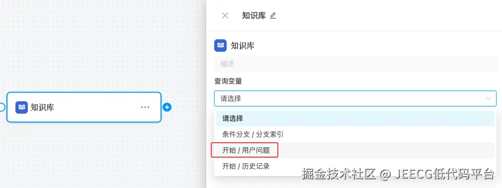 开始/用户问题:用户的提问。Jeecg知识库/文档内容:知识库检索到的文档内容。