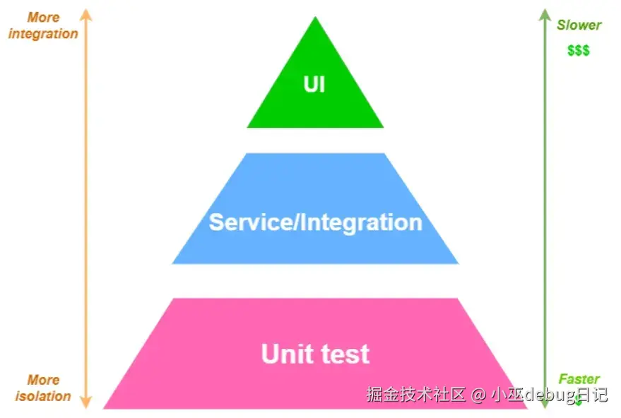 - 测试金字塔的分层(从下到上):