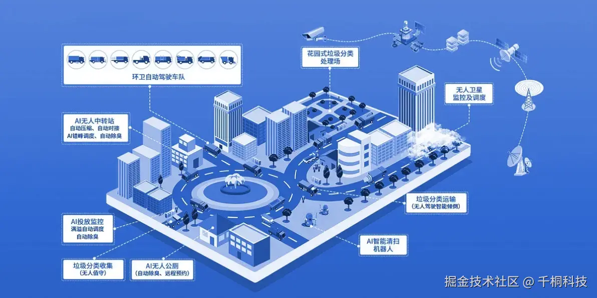 千桐智慧环卫解决方案紧密对接国家战略导向,从城乡一体化、生态可持续、数字赋能三大层面发力,构建科学高效的数字环卫治理新模式,为政府提升城市环境管理效能、推动绿色发展提供强有力的技术支撑和实施路径。