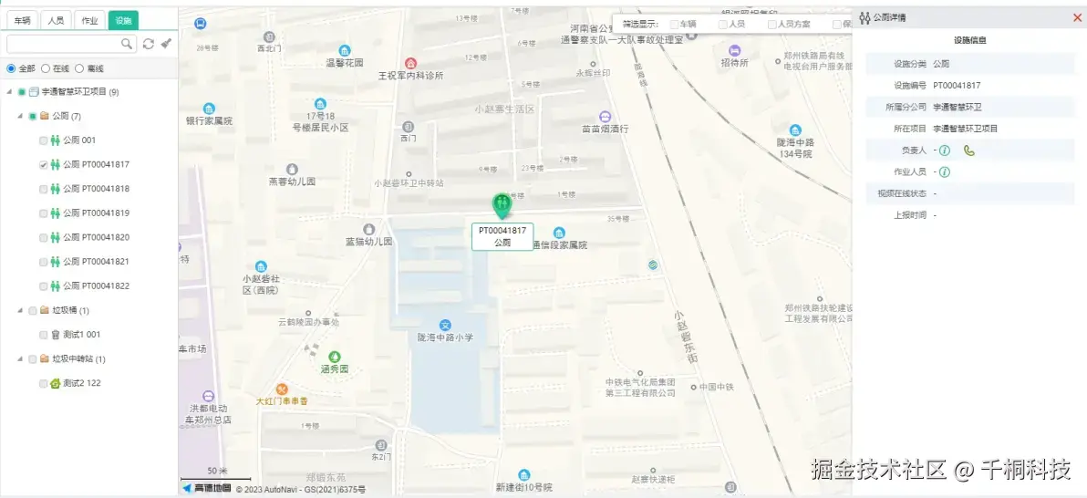 千桐智慧环卫方案实现从城市保洁、垃圾分类、固废收运到智慧公厕全流程数字化覆盖,真正实现“环卫管理一张图”,构建完整、高效、可视的环卫运营生态系统。