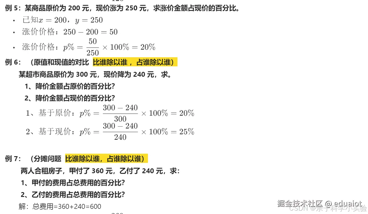 - 计算过程中,有些时候百分比转小数点更容易计算