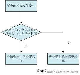 检测已聚类的模板与聚类中心点的距离,如果相似度低于阈值,则移除当前聚类。