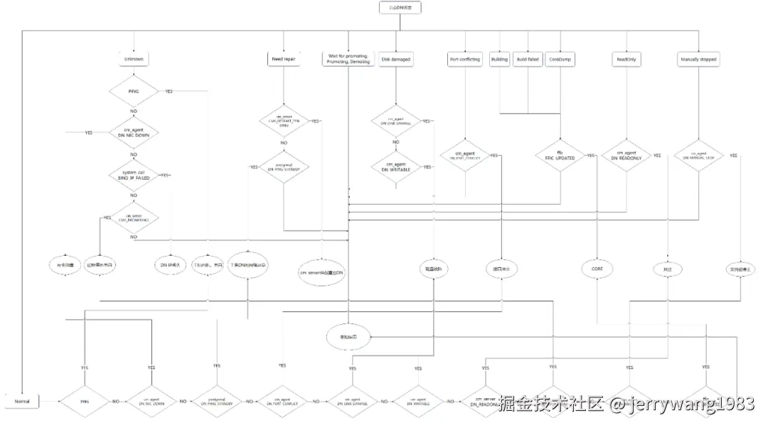 | 非日志 | 非日志 | DN节点状态: Normal、Unknown、Need repair、Wait promoting、Promoting or Demoting、Disk damaged、Port conflicting、Building、Build failed、CoreDump、ReadOnly、Manually stopped 注意:Normal外的状态都视为异常 |