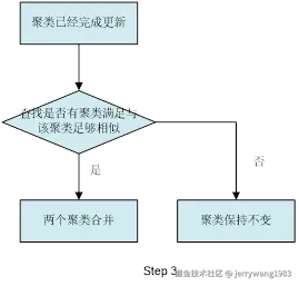 计算聚类中心之间的距离,如果超过阈值,则合并两个聚类。