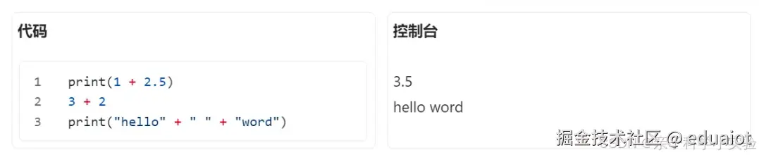 - 计算机会查看括号外的内容,括号外内容print指令,将结果3.5显示在控制台中。