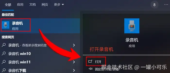 步骤1:在Windows系统中,点击 “开始” 按钮,搜索并找到 “录音机” 应用。