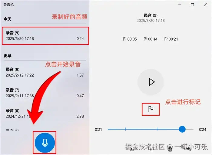 步骤2:打开录音机后,点击录音机窗口中的 “开始录音” 按钮(通常是一个麦克风图标),开始录制声音。在录音过程中,你可以随时点击 “停止录音” 按钮,结束当前阶段的录制。