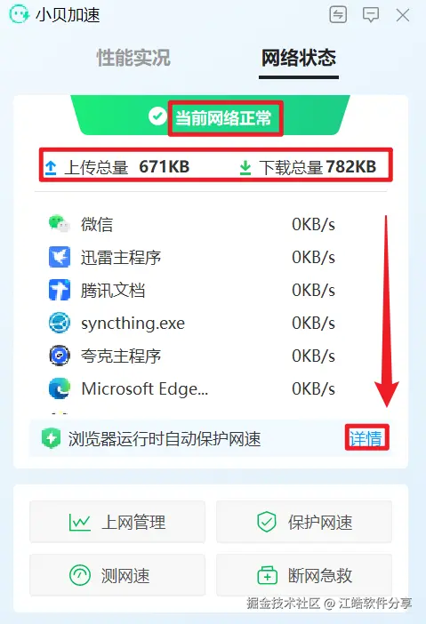 在任务栏常驻的网络监控窗口可以实时显示当前活跃的网络连接,包括各应用程序的上传/下载速率。这个功能对于排查异常网络活动很有帮助。