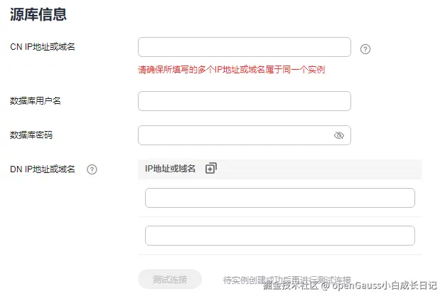 输入GaussDB的IP,请确保所填写的多个IP地址或域名属于同一个实例。
