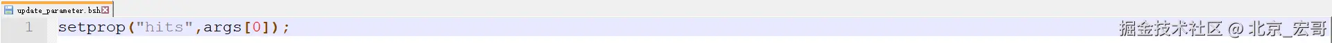 3、在JMeter主目录下创建文件夹bsh,并添加一个名为update_parameter.bsh的.bsh文件,其中包含以下内容:**setprop("hits",args[0]); ** 如下图所示: