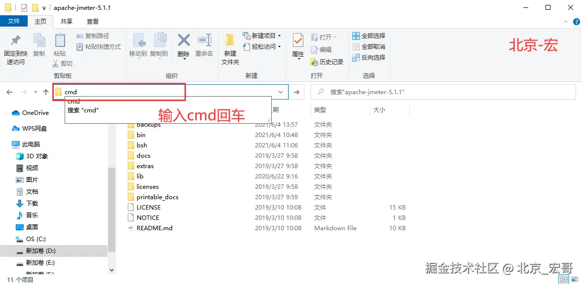 4、在jmeter的home目录下输入cmd命令,进入到docs命令窗口,如下图所示: