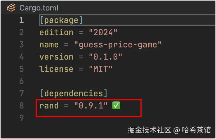 现在我们将安装第一个rust库来帮助我们实现生成随机数的功能,运行下面的命令安装rand库: