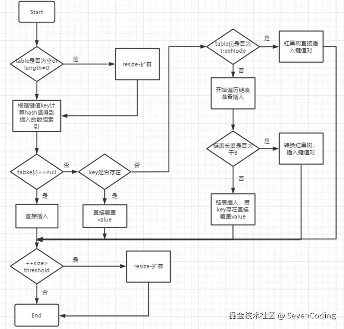 - 当HashMap中的其中一个链的对象个数如果达到了8个,此时如果capacity没有达到64,那么HashMap会先扩容解决,如果已经达到了64,那么这个链会变成树,结点类型由Node变成TreeNode类型。当然,如果当映射关系被移除后,下次resize方法时判断树的结点个数低于6个,也会把树再转为链表。