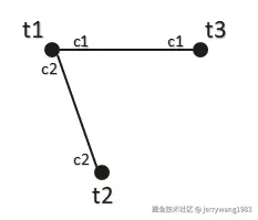 (t1、t2和t3为表,c1、c2和c3为对应关系中的列名),则join关系的图如下图所示: