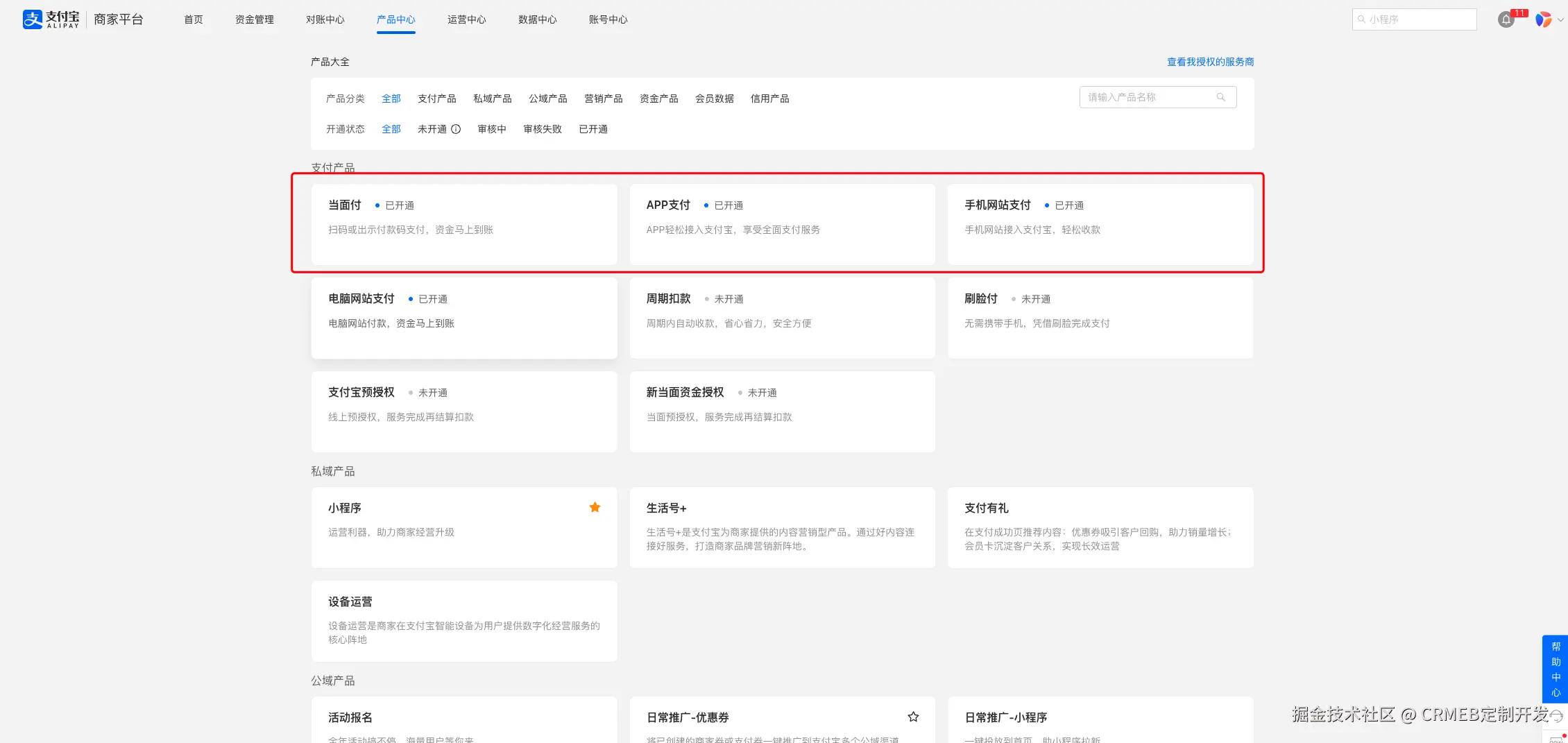点击产品中心 找到网站支付,进行申请接入支付,如果已经开通请跳过