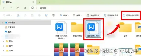 回收站是电脑默认的误删文件暂存位置,文件误删除如何恢复?我们可以在电脑桌面上找到类似垃圾桶的图标,双击点开后选中需要恢复的文件,然后点击上方的【还原选定的项目】 ,实现删除文件恢复。