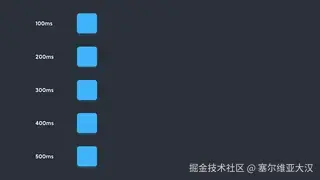 我们设定动画的持续时间在 300-400ms。具体的运动时长视具体动画而定,时长并不一成不变。 动画时长效果如下: