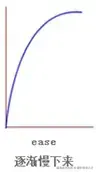 值:ease 描述:默认。动画以低速开始,然后加快,在结束前变慢。 速度曲线: