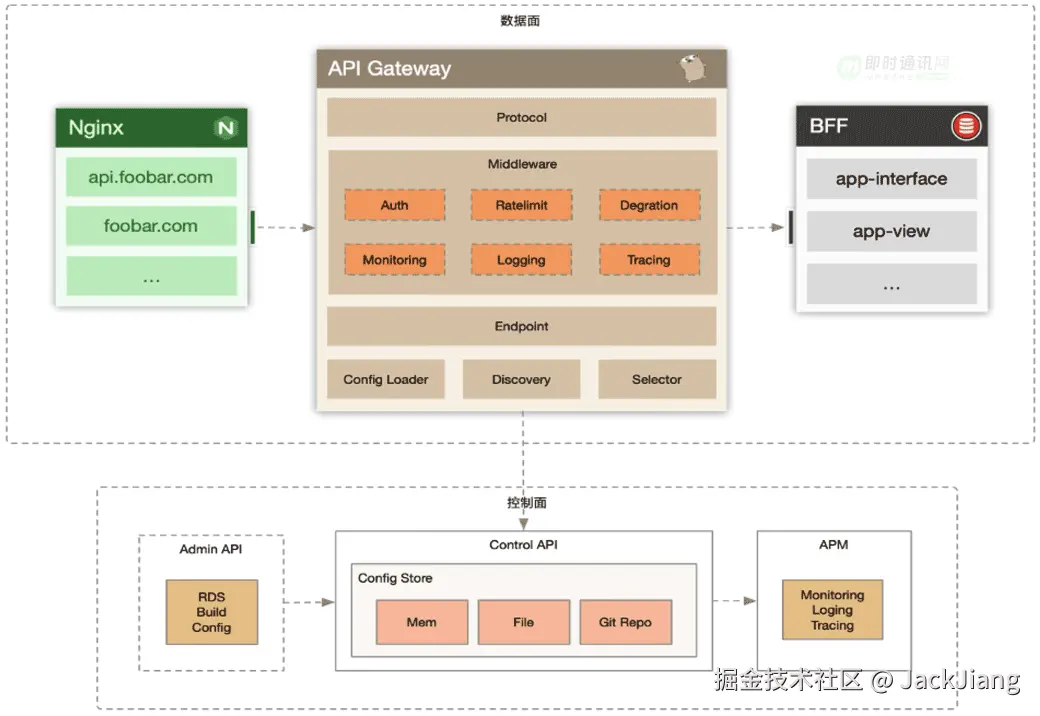 AI 网关的整体架构和传统 API 网关及其类似,在数据面和控制面上有几乎相同的设计。