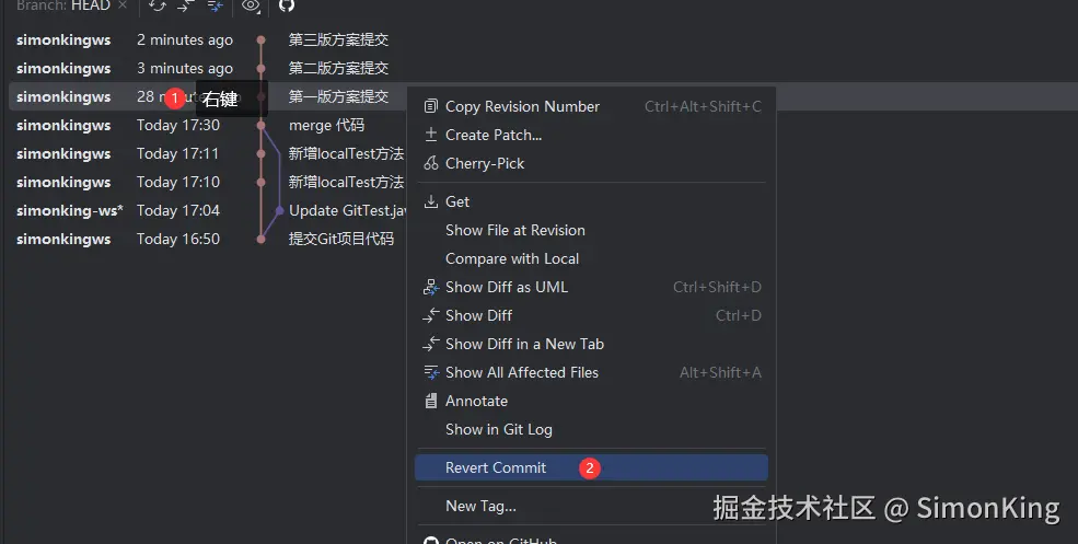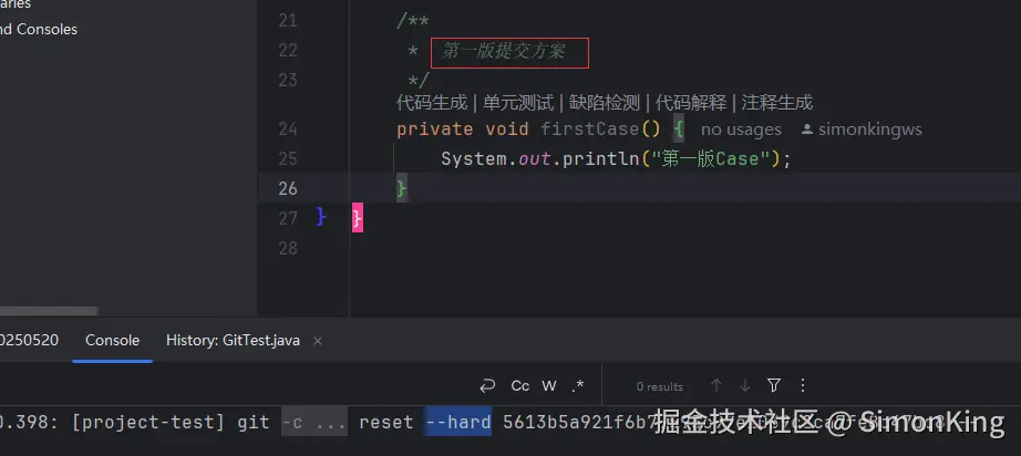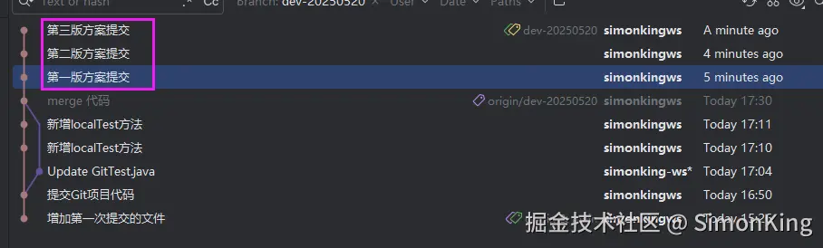 我们模拟三版提交方案。在GitTest.java增加提交的版本信息: