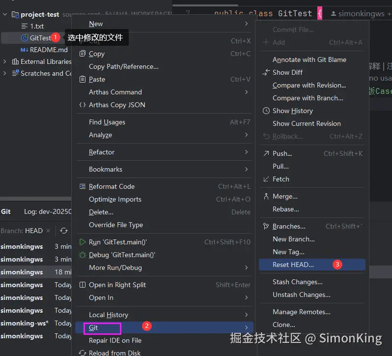 切到主干分支发现并没有GitTest.java的文件: