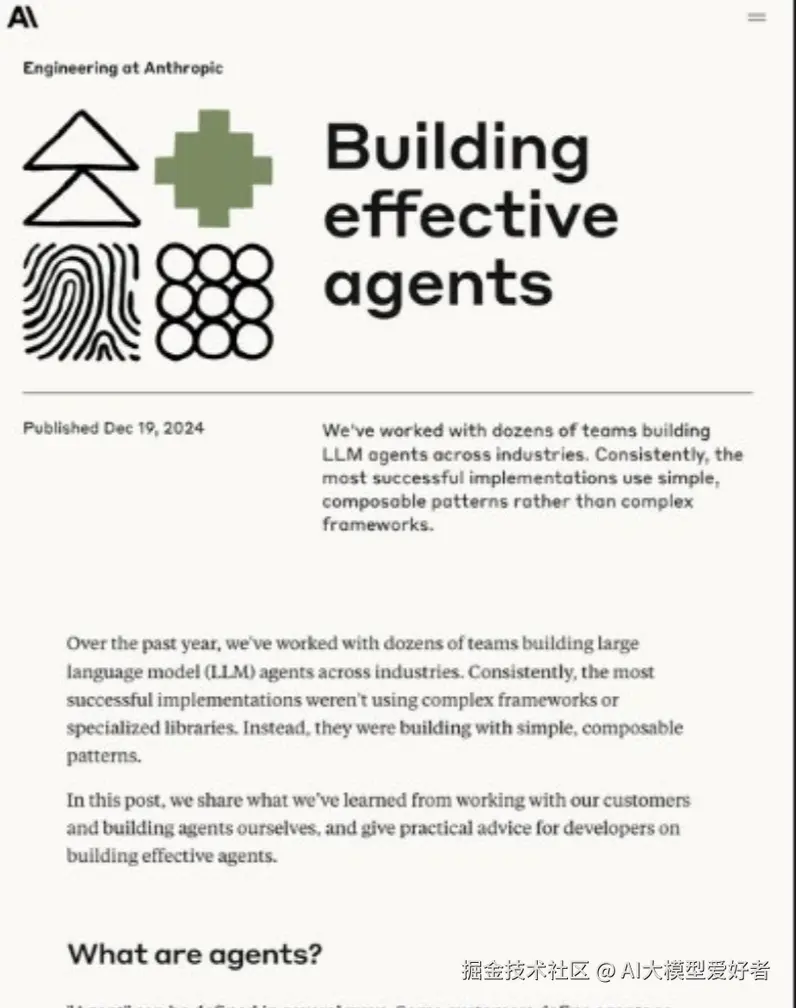 👉Anthropic 的《Building Effective Agents》就更偏系统设计层面,它会跟你讲“Agent 和普通聊天机器人的本质区别是什么”、“为什么任务要显式分解”、“什么时候用 tool-use,什么时候不该用”,比起面向大众,这个更适合开发者和产品经理参考。