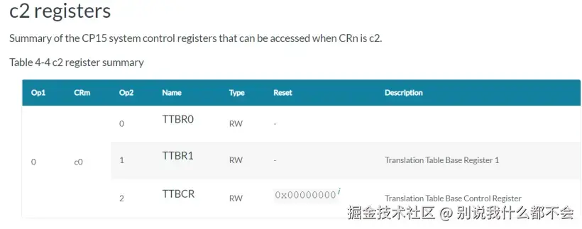 3.1 CP15 C2 TTBR转换表基地址寄存器