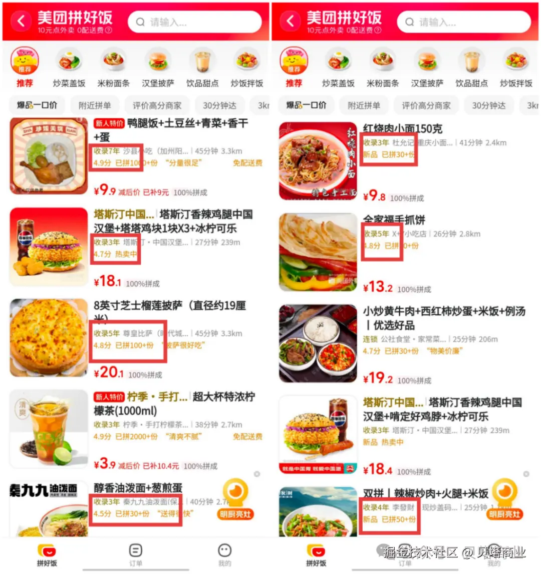 根据一些商家的开店时间推算,他们甚至是刚开店就上拼好饭,且一直未间断。拼好饭为商家提供了真实的引流作用和销量上的帮助,有的帮商家打开了局面,有的从微利产品做起变成了相对稳定的长期收入,也让商家有动力持续打造品质套餐,回馈消费者。
