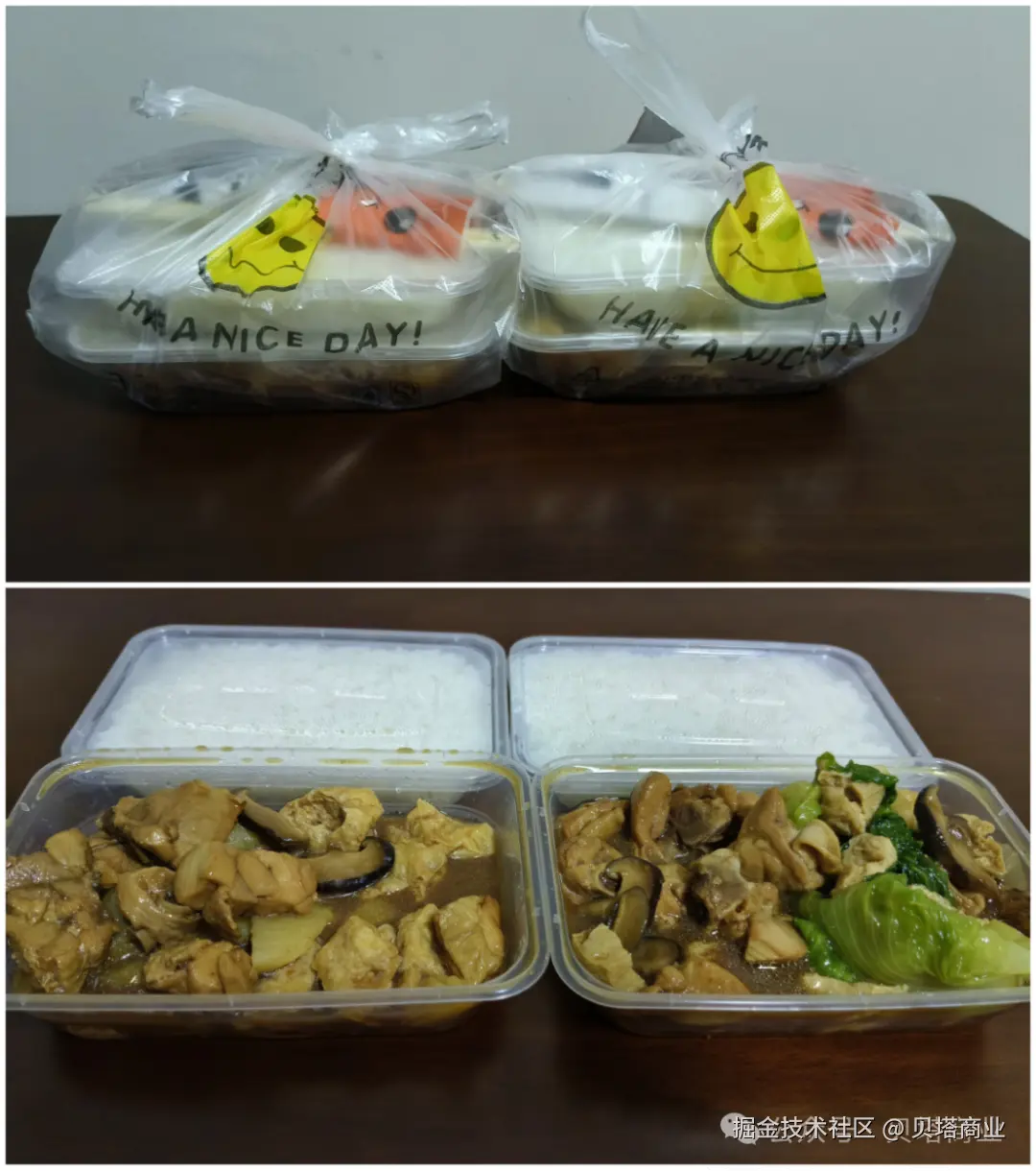 配菜都是七选二,我们分别选了土豆+油豆腐和生菜+油豆腐的组合。下图左边为拼好饭,右边为京东外卖。可以看到,除了生菜体积比较大,两边似乎在包装和分量上没有区别。