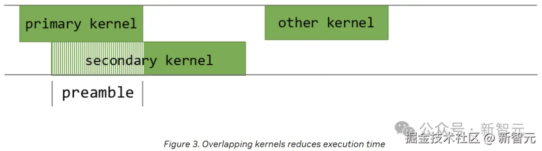 通过在 CUDA 中运用程序化依赖启动 API,英伟达允许次级内核(secondary kernel)在主内核(primary kernel)仍在运行时就开始执行。