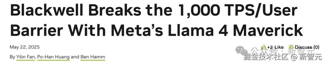 【新智元导读】英伟达,亲手打破了自己的天花板!刚刚,Blackwell 单用户每秒突破了 1000 个 token,在 Llama 4 Maverick 模型上,再次创下了 AI 推理的世界纪录。在官博中,团队放出了不少绝密武器。