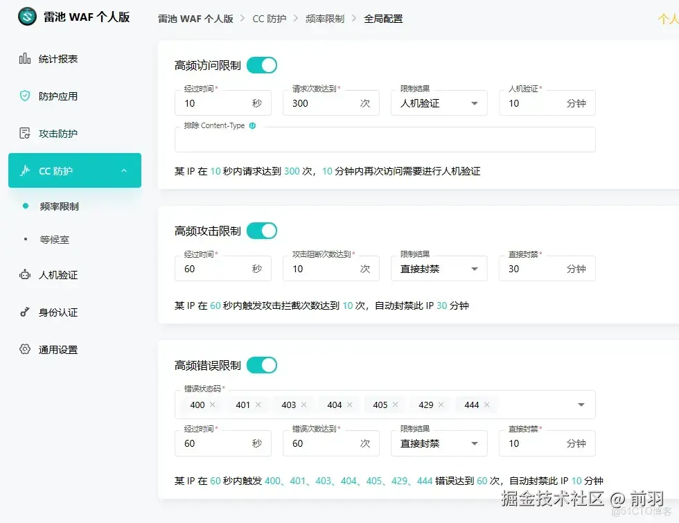 这里可以把防护设置成自己想要的频率。可以根据自己的需求进行配置。
