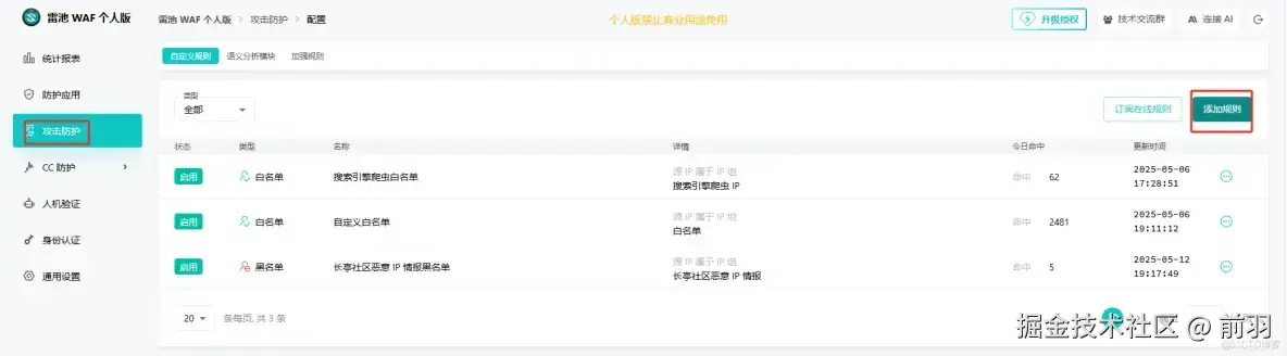 随着网络安全问题的日益猖獗,很多时候建站需要考虑信息安全的事情,但是大家又不是做信安的,但是又有安全需求,因此免费的WAF自然成了首先,这里推荐一个免费的WAF给大家使用。