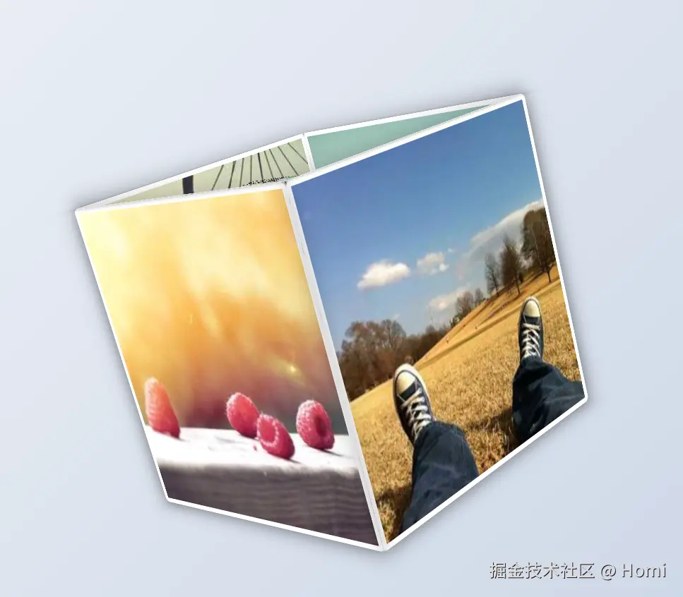 看着平铺的图片,我问:“怎么让它们形成立体空间?” CodeBuddy立刻解释需要CSS 3D转换,主动生成父容器的3D环境设置,以及每个面的transform定位代码——顶面旋转90度平移,背面翻转180度,这些复杂的空间坐标计算,AI几秒内全部搞定,省去了我查文档的时间。