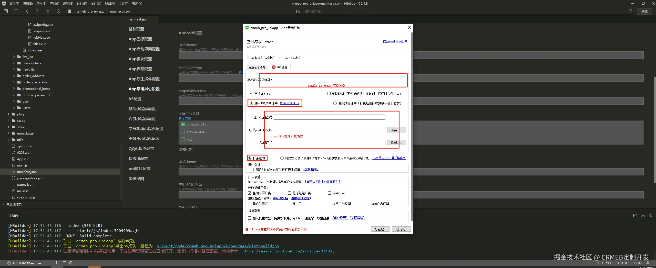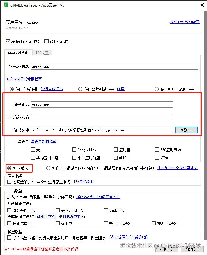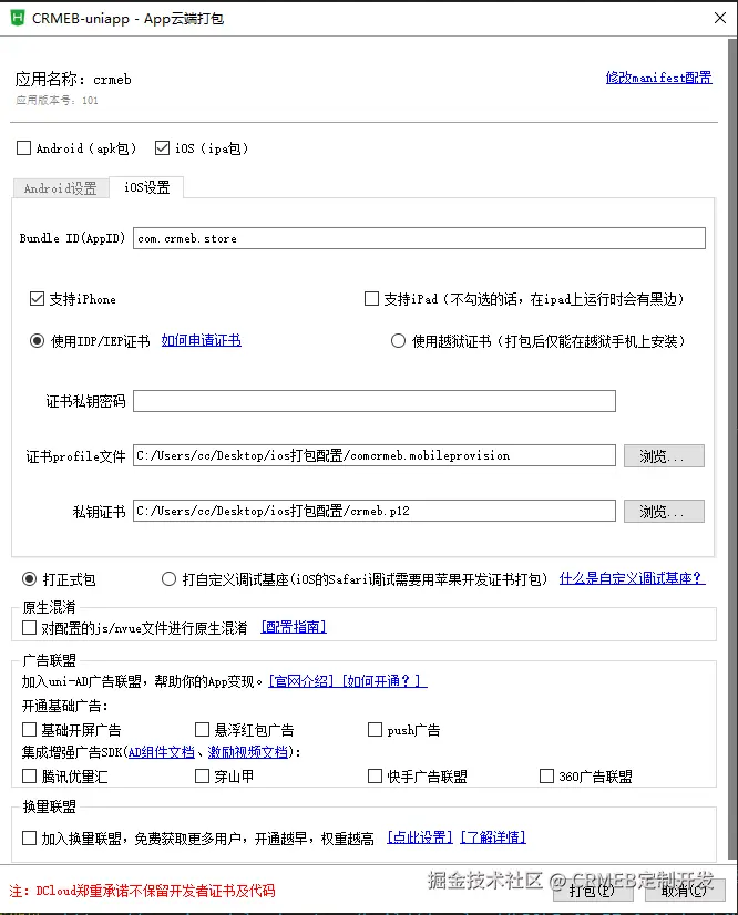 发行-原生App云打包-勾选ios包