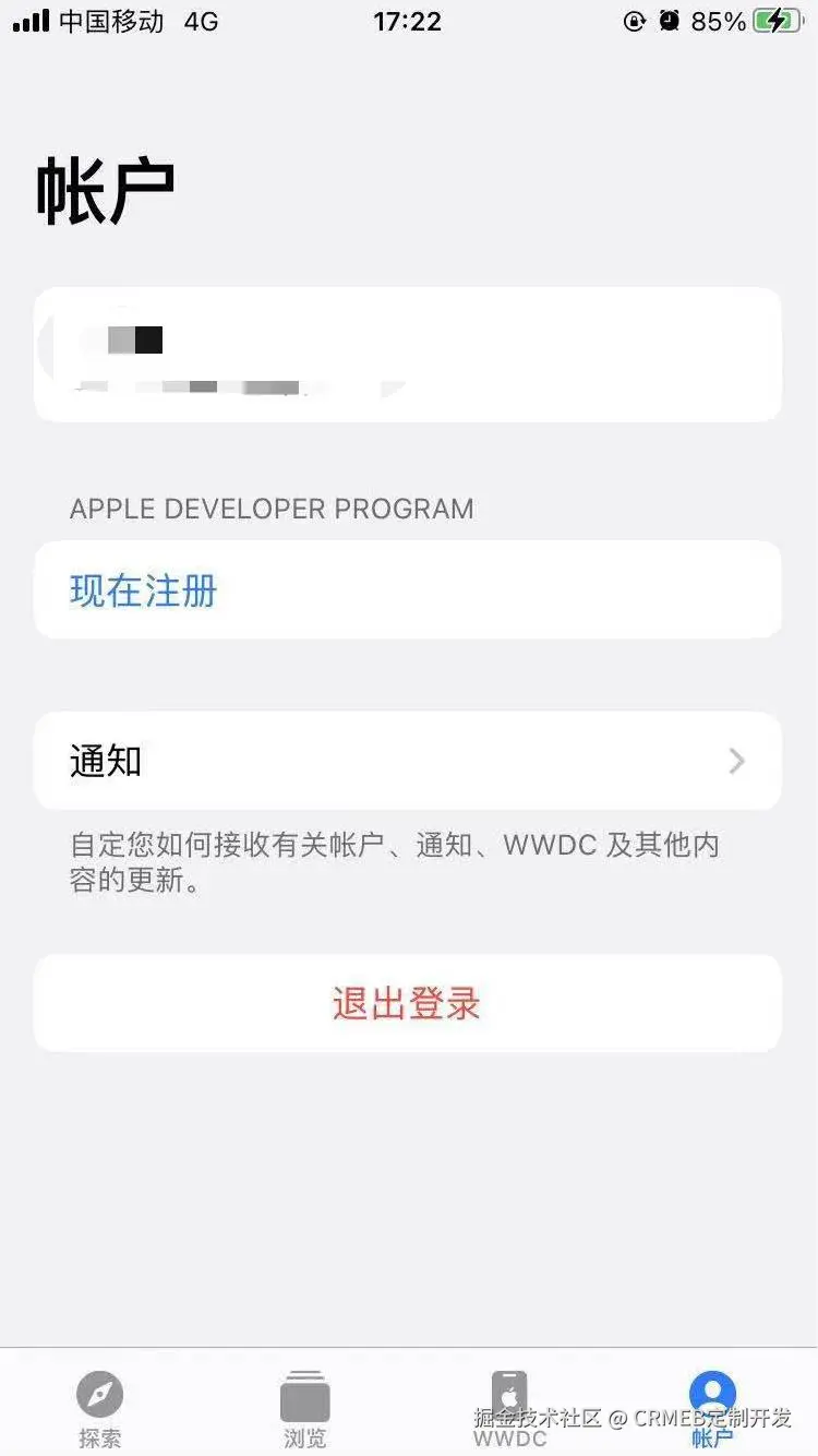 2,在手机Appstore里面搜索 Developer 下载,打开软件点击我的-现在注册,按照格式注册开发者账号