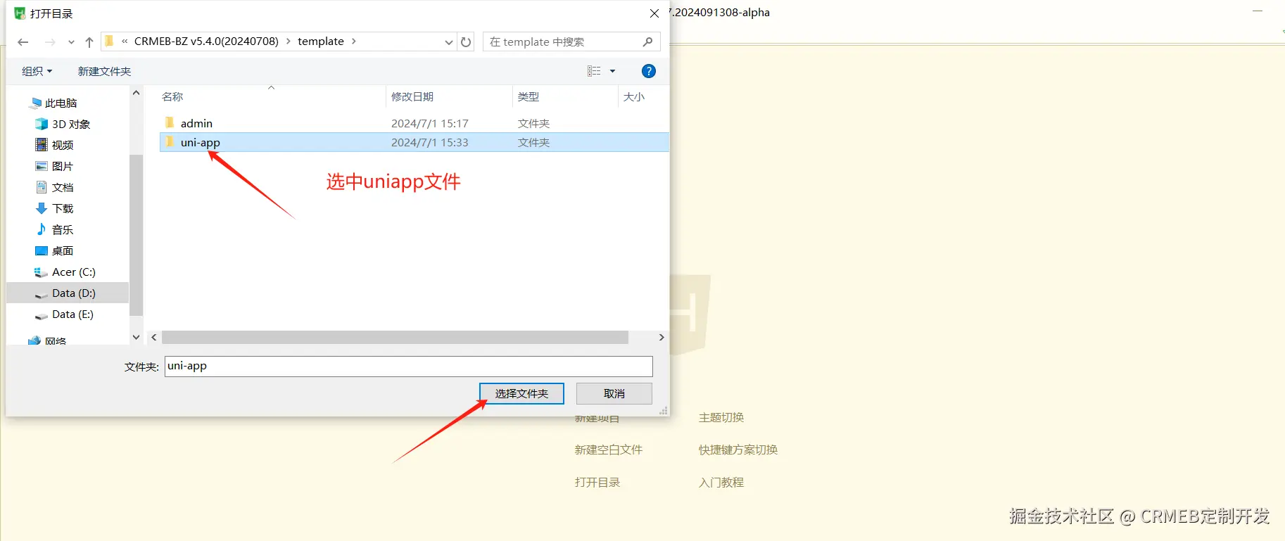 (2) 将 template/uniapp文件导入Hbuilder工具