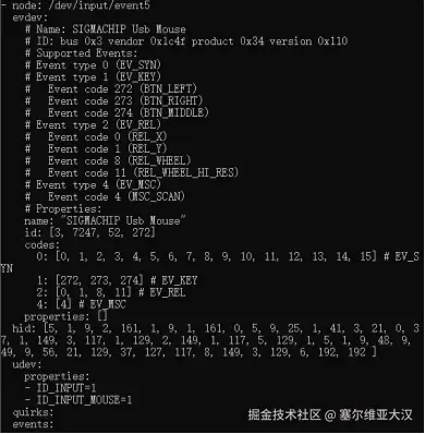 libinput 依赖的两个关键路径是设备节点“/dev/input/”和设备系统路径“/sys/class/input/”。系统路径可以通过设备节点关联得到。通过设备节点可获得设备支持的事件和属性,以及接收和发送输入事件。通过系统路径可以获得设备的详细信息。