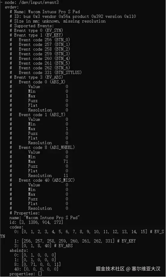 不同的输入设备支持不同的输入事件和属性的组合。