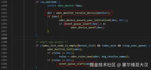 当接收到内核发出的设备热插拔事件时,udevd 将事件加入事件队列,启动工作进程处理事件: src/udev/udevd.c:main()