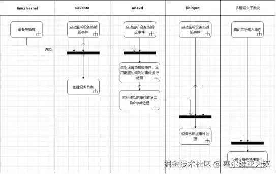 当前多模输入子系统处理设备热插拔事件的过程如图所示