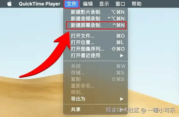 QuickTime Player是Mac电脑自带的一款软件,不仅能播放视频,还能用来录屏。操作方法如下: