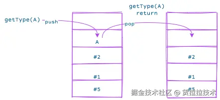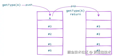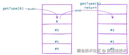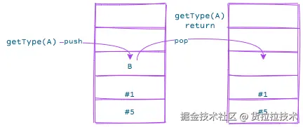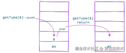 | 6 | 继续遍历 B,getType(B) 入栈,然后 return 出栈。 | ||