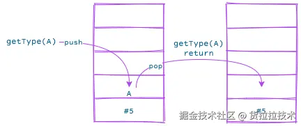 | 10 | 继续遍历 B,getType(B) 入栈,然后 return 出栈。 | ||